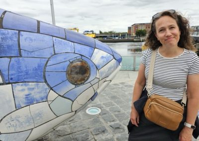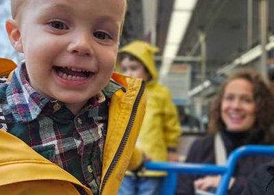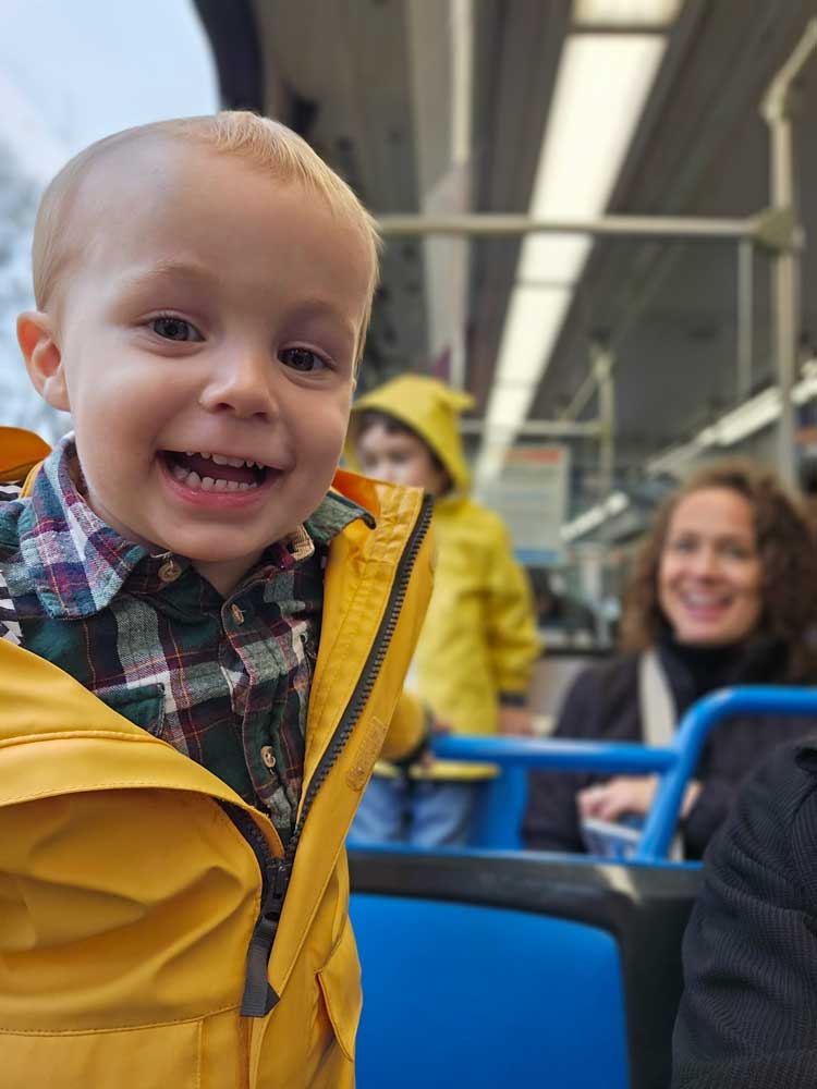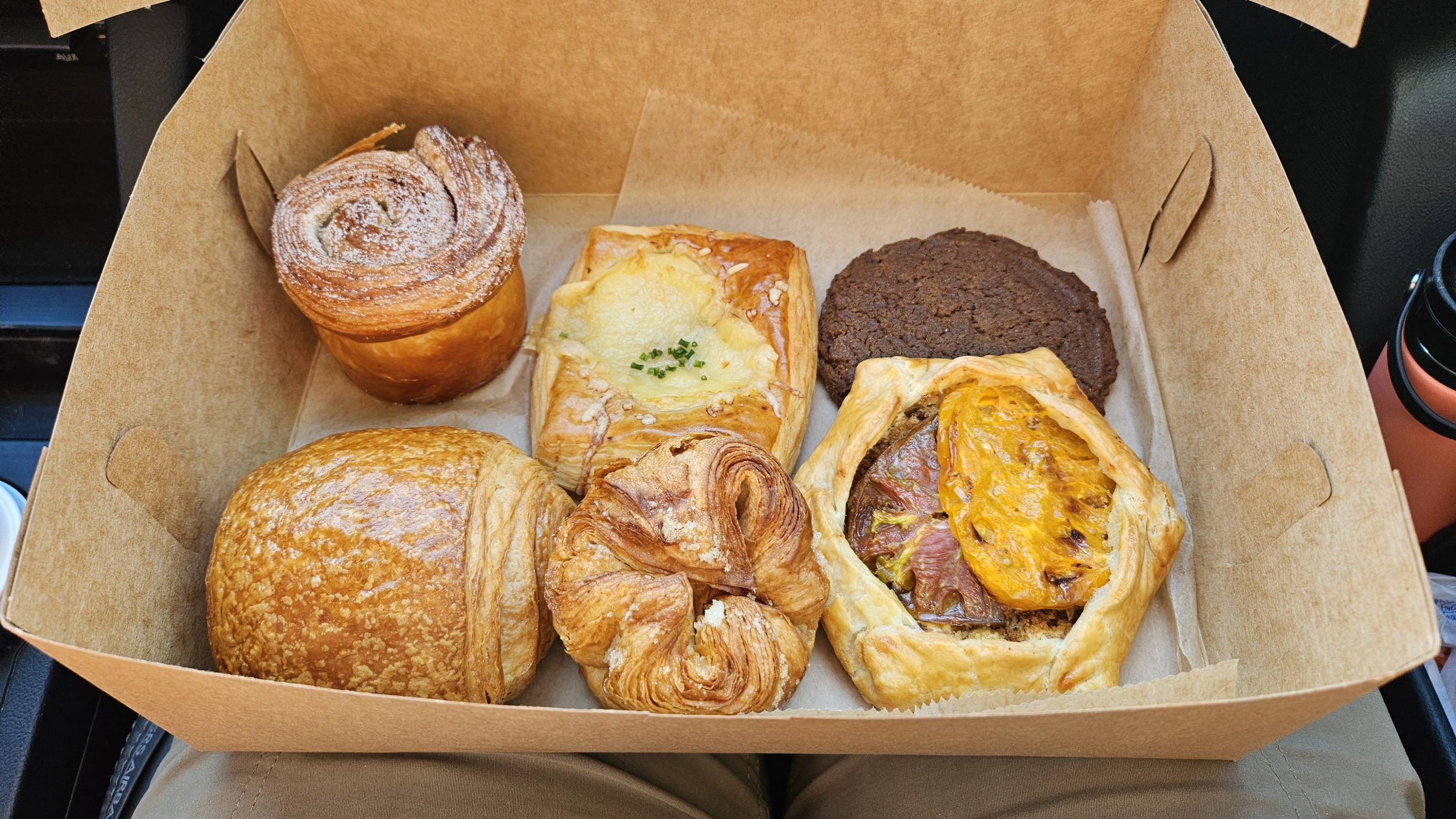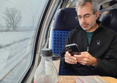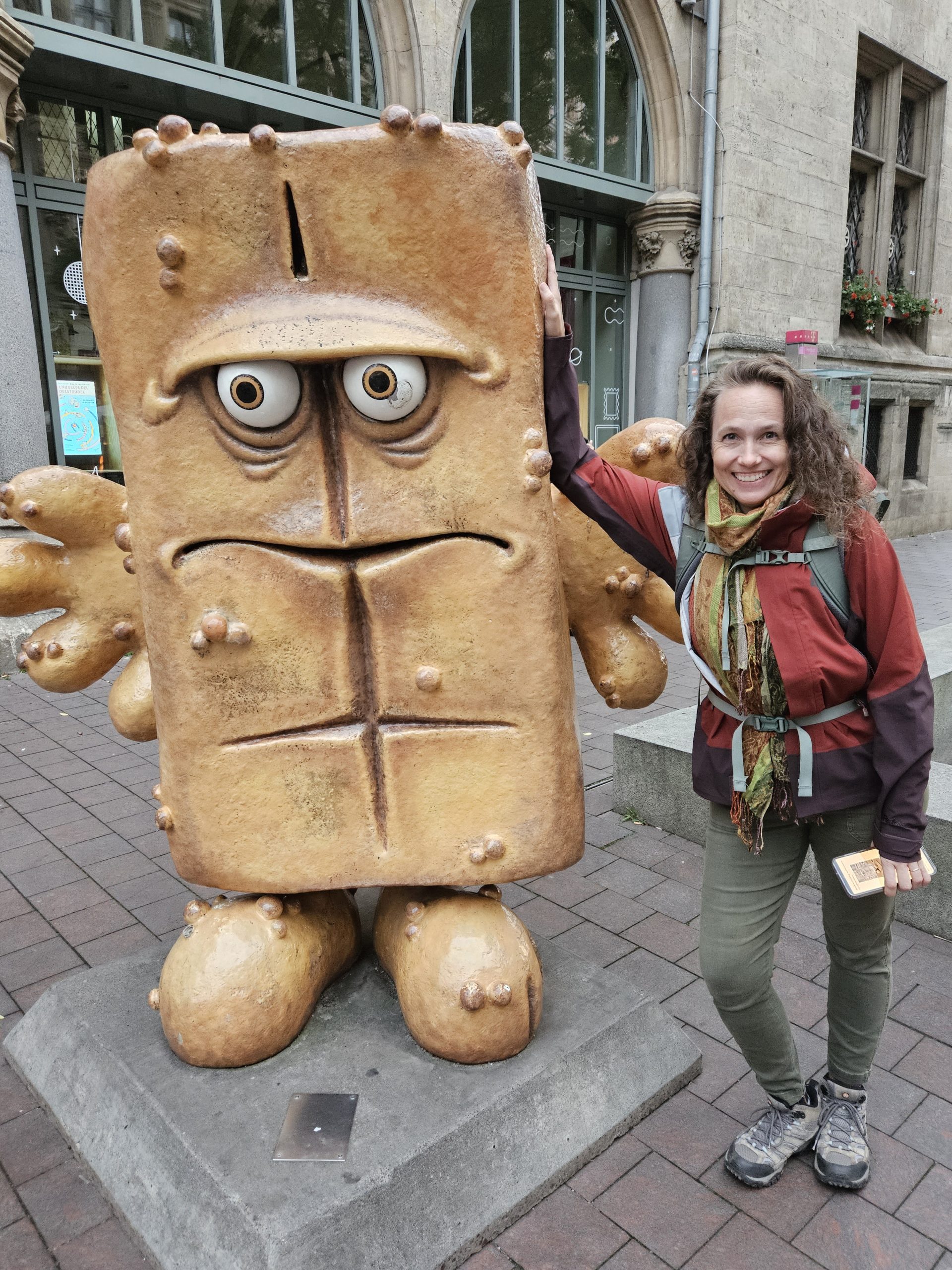When we are catching an early train, we will often stop at a bakery for a bite for the journey. This was a tasty ham and cheese pretzel (brezel).