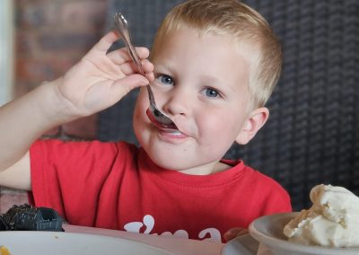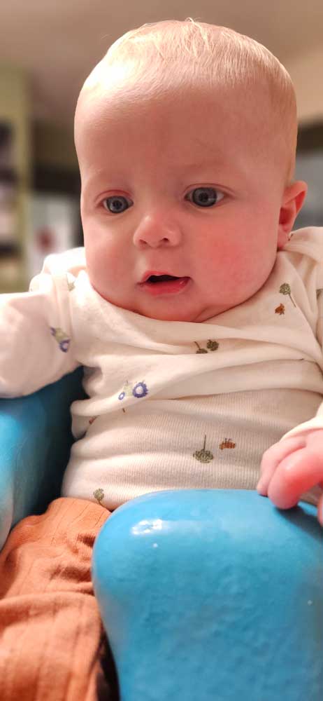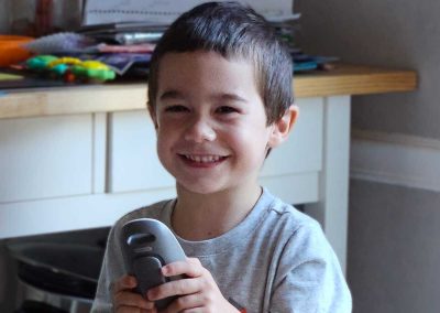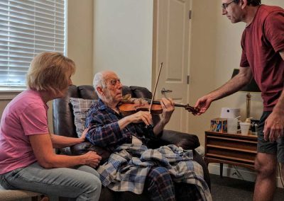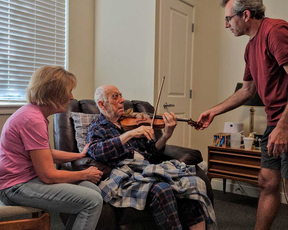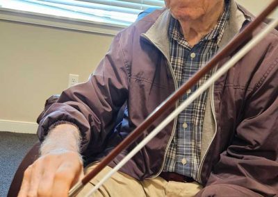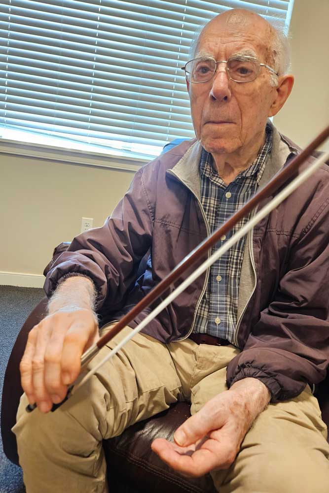 Demonstrating a proper bow hold, Max is eagerly awaiting the go-ahead from the doctor so he can play the violin again.