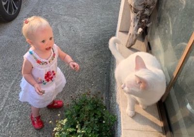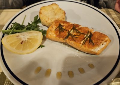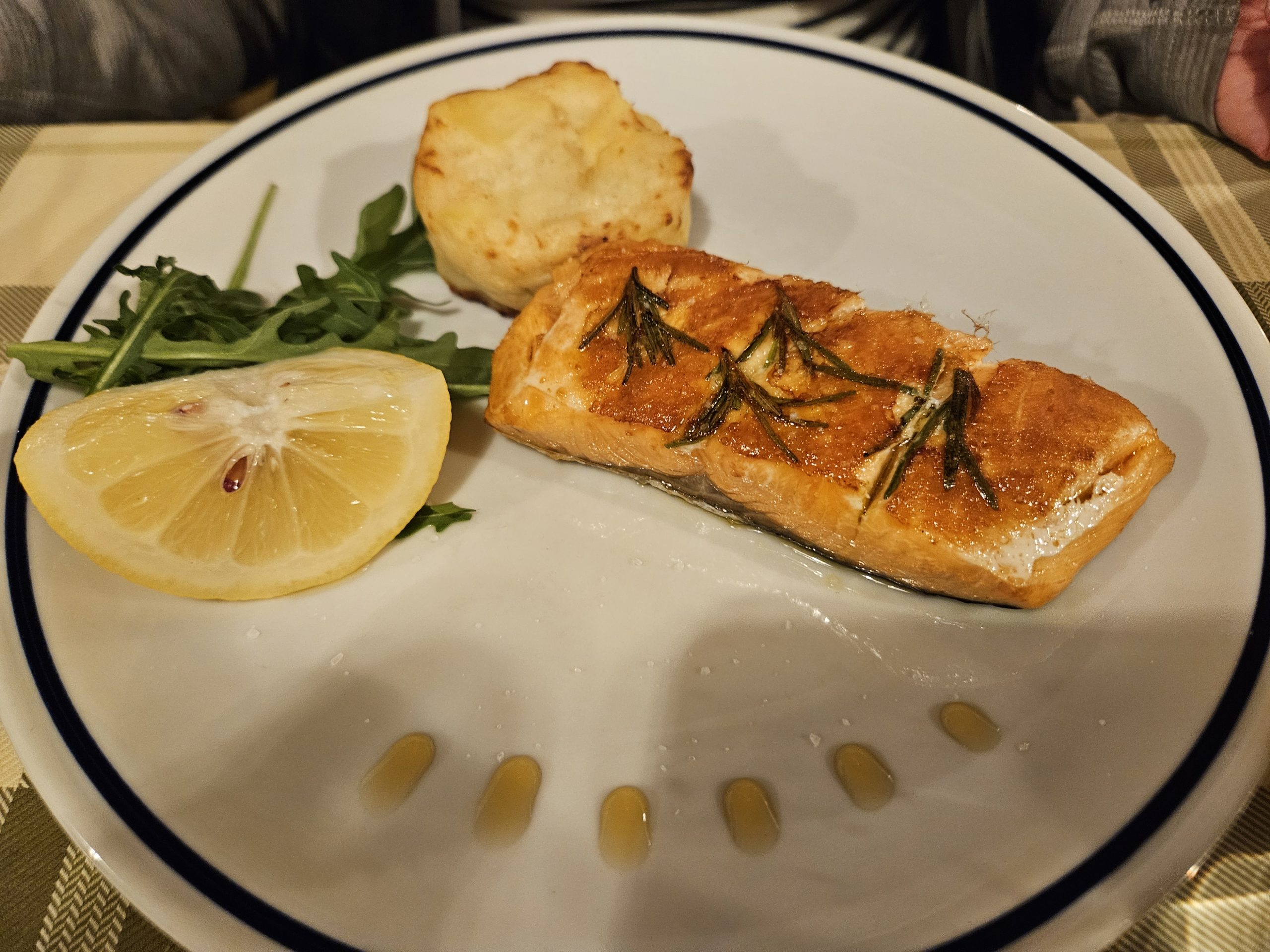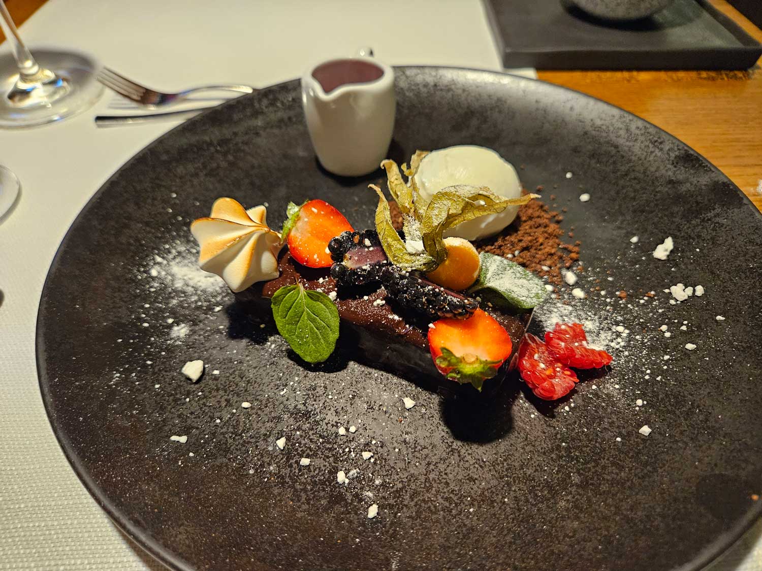 We only order dessert if it’s really going to be amazing. This was worth it! Flourless chocolate cake with gelato and fresh fruit. (Yes, I ate all the fruit.) The round yellow fruit with the wild leaves is a kind of gooseberry that they use a lot as a dessert garnish.