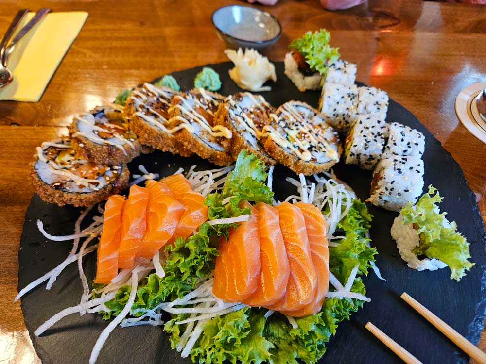 Last week we took a little day trip to a nearby town called Machern. On our way back, we stopped at a little Vietnamese restaurant and had various things. Here is the yummy sushi and sashimi.
