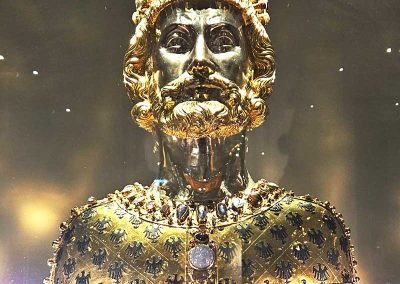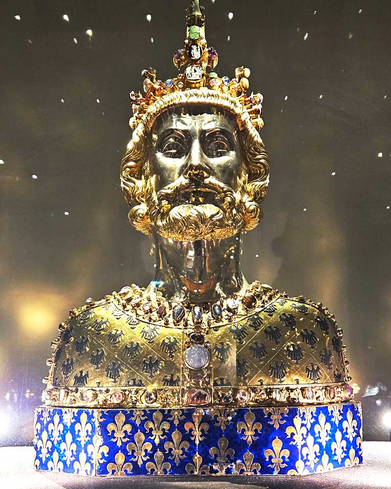 Reliquaries are often made to look like what they house. This one hold’s Charlemagne’s skull. Charming?