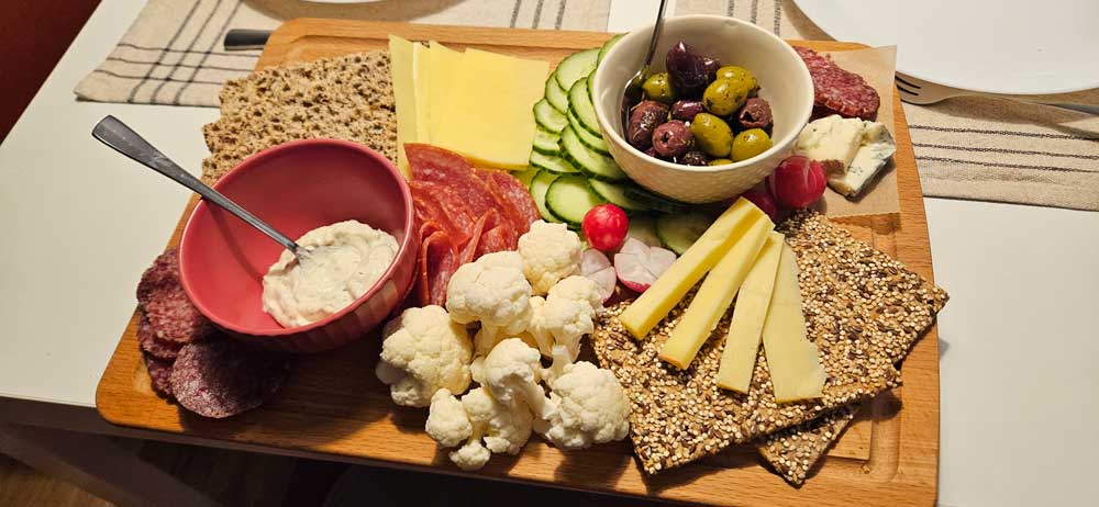 Another Mediterranean “bits and pieces” meal at a local salumeria–a lot like tapas, but Italian. With a little basket of bread and a salad, a plate like this is surprisingly filling and oh so good.