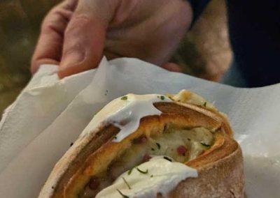 Classic street food and the most German thing that we have eaten. Not only is it great for grabbing on the go, but it’s an easy thing for us have at home too.
