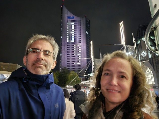 The celebration consisted of different art installations in some of the city’s plazas and people carrying lit candles and placing them in the plazas to show the collective power of hope and action. It’s called Lichtfest Leipzig and it was fun to be out amongst the people of our new home on a meaningful night.