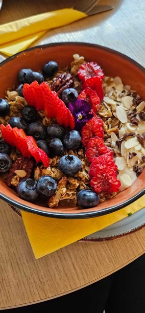 Yogurt with müsli and beautiful fresh fruit is a super popular item on cafe menus. I don’t have a photo, but another yummy breakfast is a Käse Frühstuck: bread and all kinds of yummy cheeses.