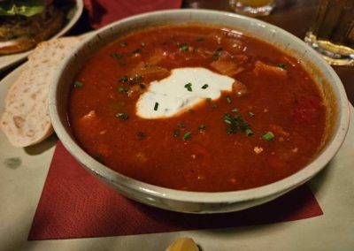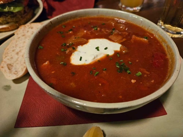 This is a Russian soup that is popular here in eastern Germany. It’s reminiscent of chili, but with no beans and a different spice profile. Tasty.