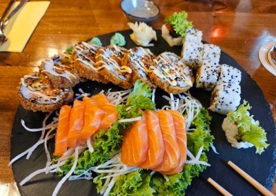 Last week we took a little day trip to a nearby town called Machern. On our way back, we stopped at a little Vietnamese restaurant and had various things. Here is the yummy sushi and sashimi.