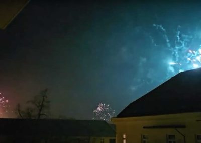 Speaking of celebrations, I have to share my experience with New Year’s Eve. After watching “Dinner for One” and having a cozy meal at home, we settled in for some quiet festivities at home. We had heard that Germans love fireworks on New Year’s Eve, so it was no surprise when the sounds of fireworks started ramping up around 8pm… nothing out of the ordinary. We watched a movie and turned in around 10pm with our noise-cancelling headphones on to block out the increasing noise. Well, I woke up at about 12:10am to the absolute racket of fireworks exploding EVERYWHERE! Imagine the fireworks show put on by a small town and then put at least one of those on each block. That was happening all around us and all over the city. And then, occasionally, a TRULY BIG rocket would explode. The noise was incredible and the air was so full of smoke. It went on for about an hour. I have never experienced anything like it in the U.S., even during the height of celebrations on Independence Day. I threw on my coat and went out on the balcony to take a video, but I just couldn’t capture the true extent of the nuttiness. The most amazing part of the night is that Nathan slept through the whole thing! I couldn’t believe it.