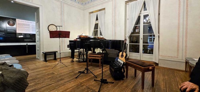 The other different thing this week is that we attended a concert at the Schumann Haus Museum on Saturday night. Much like the Mendelssohn Museum, the Schumann Haus is the museum in the former home of Robert and Clara Schumann. There are some artifacts and displays about the musicians and composers. We had yet to visit until this week and Nathan found tickets to a concert for Saturday night. It is so fun to hear music in these rooms that were originally for that very purpose. This concert was a bit different. The group consisted of a piano, violin/viola (same musician), guitar, and accordion. The played all kinds of music, from tangos by Piazzolla to crazy modern stuff to delightful arrangements of Mozart and Beethoven. The addition of the accordion made it truly unique and the accordionist was amazing. It was a real treat.