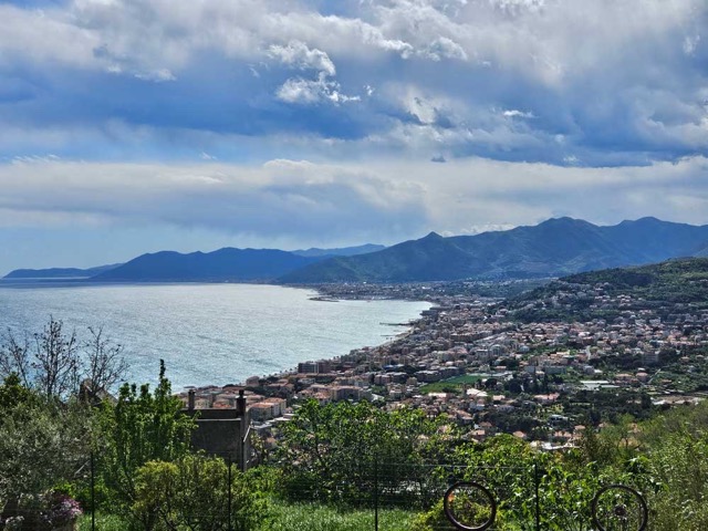 We are nearing the end of our time here in Italy, so we thought we should probably take advantage of our proximity to the Mediterranean and enjoy a few days on the coast. We found a little apartment on AirBnB in a small town called Borgia Verezzi. The drive south was absolutely beautiful. The skies were clear, so we had a great view of the Alps and the leaves are all out on the trees, so the landscape was deliciously green. We didn’t really have any plans for while we were there, so we just took it day by day. Nathan had his piano along, so he practiced and worked on languages, as usual. I drew and listened to my audiobooks. We walked along the boardwalk and hiked into the hills behind town. There was a point on our hike where we could see almost all the way to Genova on the east.