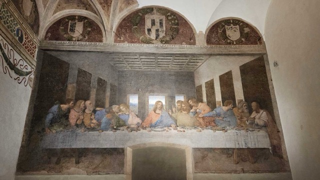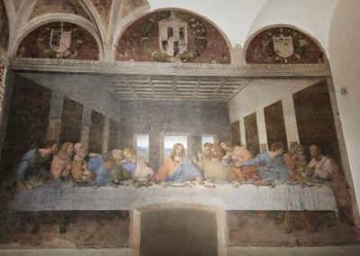 After the hot trip around the roof, we just had to make another stop for gelato. Then it was off to see Leonardo Da Vinci’s The Last Supper. You have to have advance reservations in order to get in, so we basically planned our trip around our tickets for this one thing. After the heat and chaos at the Duomo, the tranquility and order at the convent of Santa Maria delle Grazie was welcome. They only allow a limited number of people in at once and everyone has to go through a series of airlocks to maintain the temperature and humidity in the refectory where the painting is located. It’s pretty fragile due to how Leonardo chose to paint it, so they are really careful. The painting is truly stunning in person and it was worth the trip. Also, our tour there was excellent–the guide was knowledgable and communicated so much great info. We had also been watching lectures on Leonardo for a couple weeks in preparation–well worth the effort. Then it was off to the train station for the ride home. It was a good, if quick, trip to Milan.