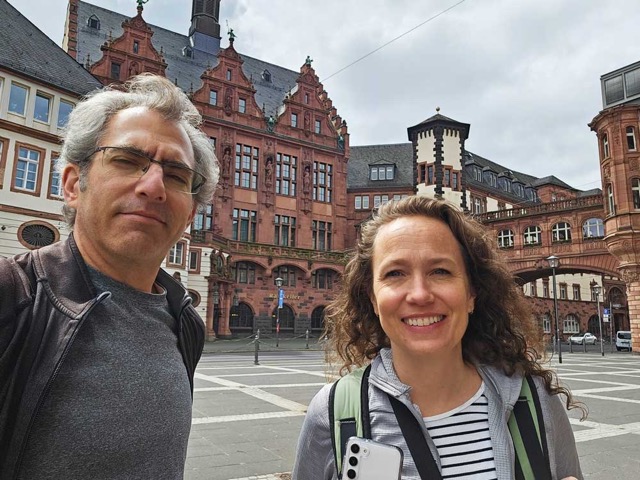 We spent this week further exploring our new corner of Germany. We spent a day in Frankfurt, explored more of Mainz, and took a cruise on the Rhein. We were also lucky enought to meet up with Nathan’s Uncle Neil and Aunt Julie! We are back to being without a car, so we have returned to buses, trains, trams, and lots of walking. Spring is fully springing in that we have had some glorious days of warmth and sun as well as torrential rain. So, we are planning our activities strategically to take full advantage of the good weather while staying (mostly) dry.