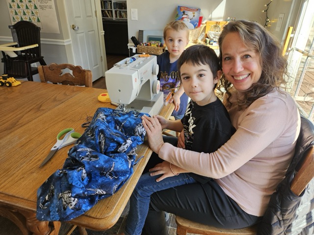 I’ve been working like mad to sew some special quilts and bedding for all the “big” kids. We also took the kiddos to pick out fabric and they each helped sew their very own pillowcase for a new pillow. Presents from Grandpa and Grandma came early this year so that we can enjoy seeing their excitement. Grandpa did a great job of wrapping the gifts. One present that will have to wait for better weather is a new play structure at Alex’s house.