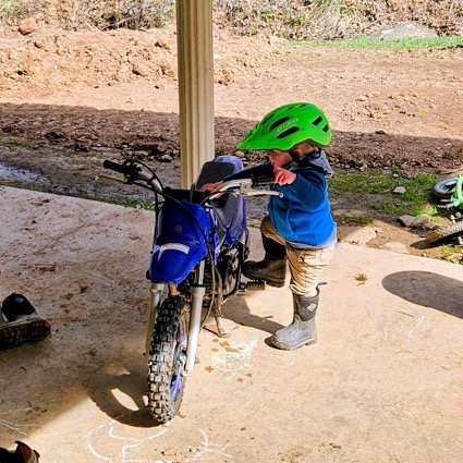 It was Piper’s fourth birthday this week, so we’ve had fun celebrating with some treats and gifts. There was also the ceremonial passing down of the little dirt bike from Huck to Piper, so she’s learning to ride. He got the next size, so there’s been some fun buzzing around in the yard. Poor Hugh just desperately wants to get in on the action, but he had a good time today riding with his dad.